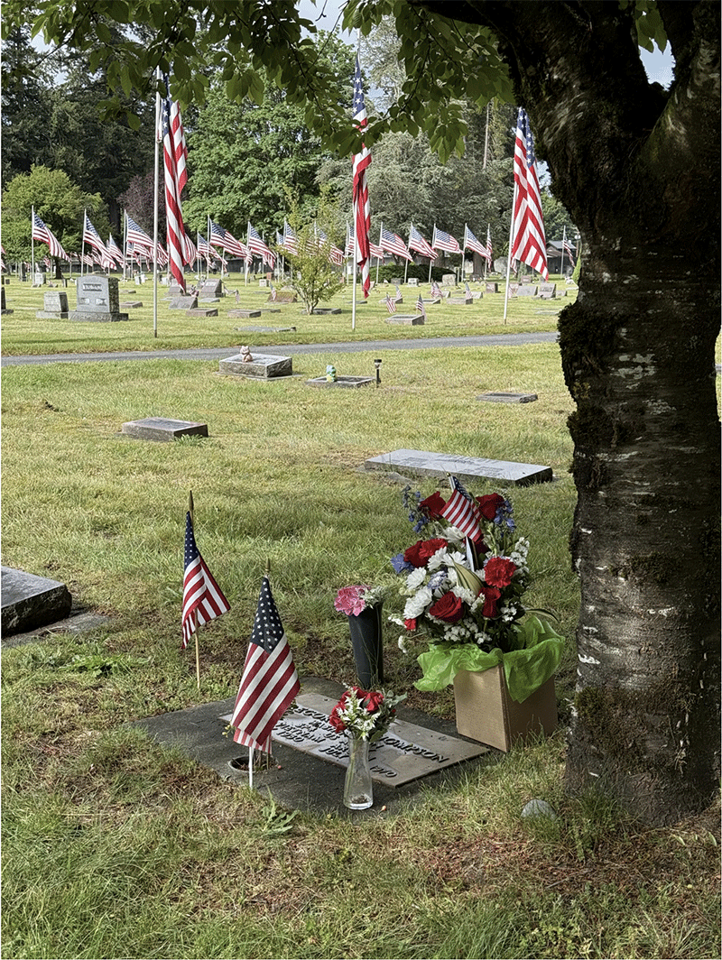 - The Cemetery has a large Memorial Day event with bands, speakers, etc and Beth extended an invitation to attend or participate in that. She said they place a small American Flag on each grave that has a veterans marker and they have about 300 larger flags that are placed along the entry road and around the cemetery. These flags are the size that would be draped over a coffin and all the flags have been donated by various organizations and by individuals from interment ceremonies.